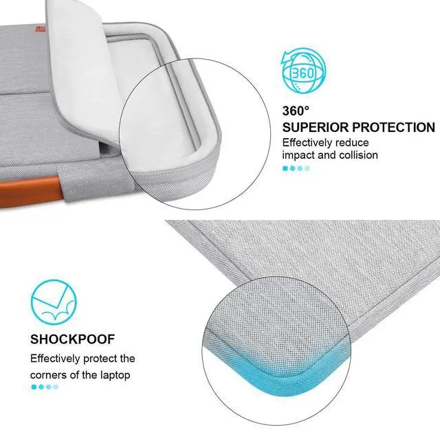 EASY TO CARRY: Grab-handle on top which is stretchable allow you to switch between a laptop briefcase handbag and laptop sleeve bag, make the MacBook pro bag very PORTABLE for your daily laptop carrying and use. This MacBook sleeve with handle is SLIM AND LIGHTWEIGHT can be easily slide into a briefcase, backpack bag, providing you with easy portability and convenient use! Perfect for your needs when you are going to a class, meeting, or business trip. Let your journey be free and enjoyable! ^^