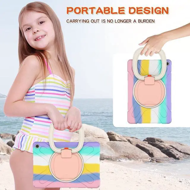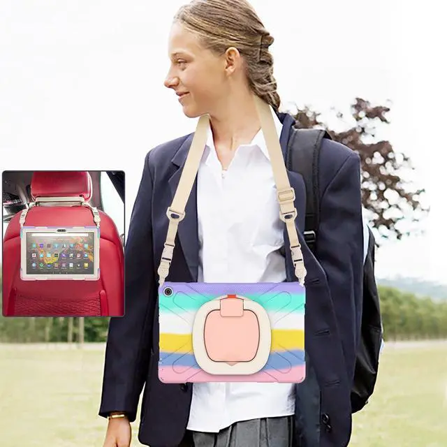 360 Free Rotatable/Multi-angle KickstandRotatable stand supports landscape and portrait mode and comfortable typing angle. The 360 Degree rotating Kickstand provides multi-angle viewing, offering a pretty convenient use experience for film watching, working and typing. Adjustable & Detachable Carrying StrapPortable Shoulder Strap allows to carry your tablet conveniently when you are at work, on a trip or outdoors. You could even hang it behind the head rest of car seat or wherever you want. Drop ProtectionReinforced Drop Protection. High-performing impact materials. The raised edge and 4 corners protection design can maximize protect your tablet, against accidental drops, shocks, and scratches.