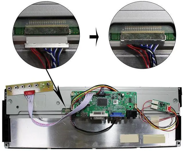Specification 14.9" LTA149B780F 1280x390 LCD with 67686 controller board, supports DVI VGA audio input; Brightness 400 cd/m (Typ. ) Contrast Ratio 500:1 (Typ. ) (TM) ^^ UsageUsually for DIY project, such as game cabinet, car monitor ^^ Power Adapter12Vdc More than 2A.