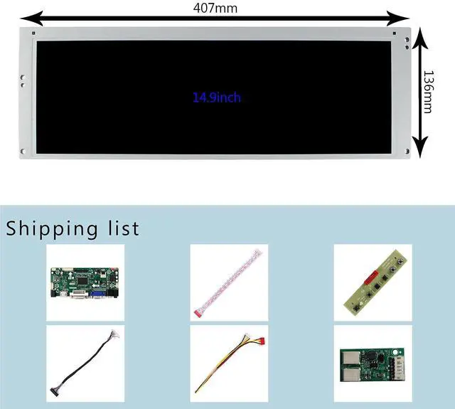 Wire Length: 3.9FT (About 119-120cm) ^^ ServiceAll the products are tested before package and shipment, if any problem of product, please feel free to contact us ^^ Content 14.9" LTA149B780F 1280x390 LCD with 67686 controller board, and power supply