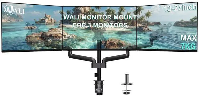 ^^ Package Includes: WALI triple monitor gas spring desk mount x1, Mounting hardware kit, User manual, experienced and friendly US based customer support available to assist 7 days a week.