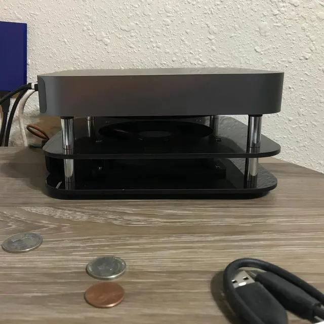 1. The panel size is 197x197mm, which is consistent with the case size of mini Mac. The laminate material is acrylic; 2. The height of the double-layer belt fan is 60mm, and there is a small error in the measurement; 3. Considering that the original machine will not be very hot, you can choose between single layer and double layer; 4. For some of the mini Macs of DIY, it is recommended to choose the double-layer fan with wind. 5. This model with double-layer fan is equipped with three 12cm super frequency silent fans (with red blades) as standard;