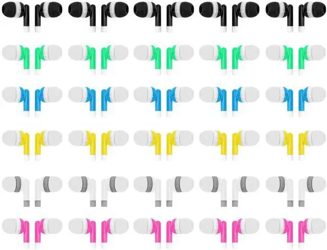 108 PACKS --- Go through headphones fast? This headphones set will make sure you always have spare ones at a reasonable price. ^^ 6 COLORS --- Bulk earbuds in different colors will make everyone happy. ^^ INDIVIDUALLY WRAPPED --- Every pair of earbuds is packed in a plastic bag, making them look neat when you hand them out. ^^ SPARE EARBUDS CAPS --- Someone has smaller ears? Dont worry! We have smaller earbuds caps in the package. ^^ APPLICATIONS --- Perfect for classroom use, also good for home use, travels, parties, meetings and anywhere you need disposable earbuds headphones.