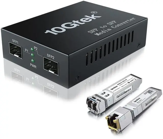 10 Gigabit media converter with x2 SFP+ Transceivers, copper to fiber, provide reliable and cost-effective media conversion and network distance extension. ^^ Easy installation Plug & Play. Automatic Speed Selection detects the data rate of the installed transceiver and the connected device.