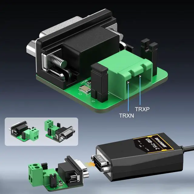 A converter board is included with the package, which allows configuration of two 49.9 termination resistors and selection of wiring conversion methods.