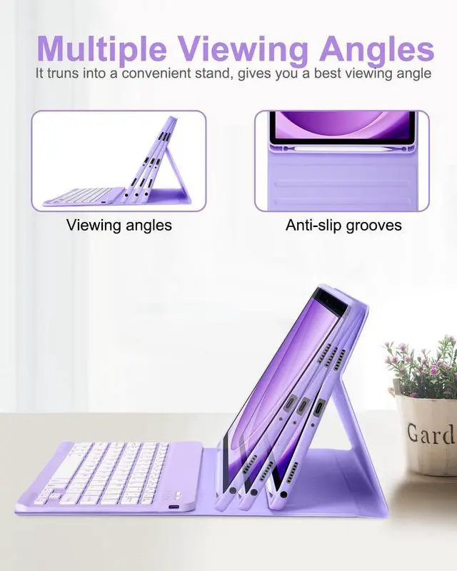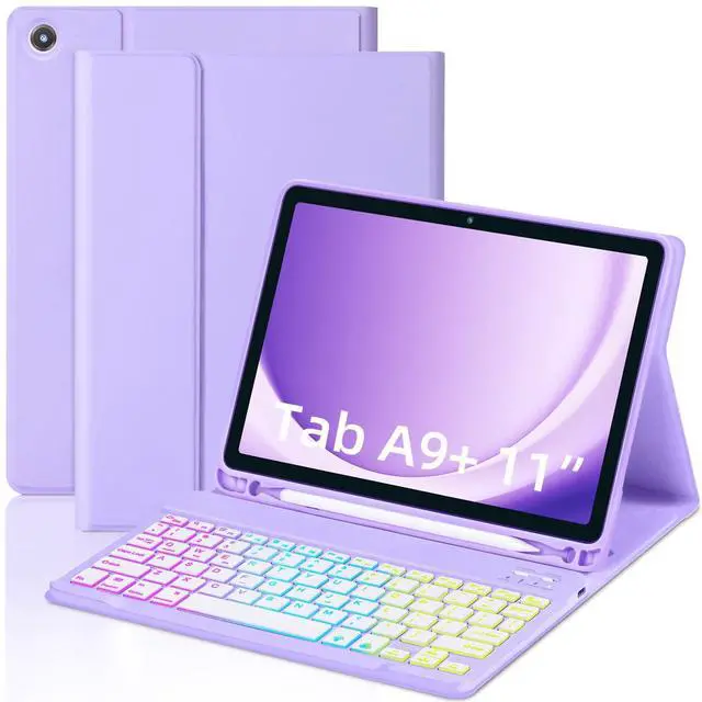 Compatible ModelsThis keyboard cover is compatible with Samsung Galaxy tablet A9+ 11-inch (2023 version), models include SM-X210/X215/X216/X218. Please check your tablet model "SM-Xxxx" in your tablet "Settings" before purchasing. (This product does not include: tablet, pencil! ) ^^ Rainbow Backlight, Multi-Function KeyboardSuitable for Samsung tablet A9+ RGB rainbow backlight keyboard, 7 adjustable backlight colors, breathing light backlight mode can be automatically switched. The backlit keyboard can be used in the dark, providing a comfortable typing experience. Rich function shortcut keys allow you to use Samsung Tablet A9+ more efficiently & comfortably, such as editing documents, navigating applications, creating presentations ^^ Precise Hole Position, Honeycomb Design The mold for A9+ case is made based on the real A9+ tablet, and the precise cutouts can make full use of all functions, and provide perfect protection and convenience for daily use. The soft TPU inner shell adopts a honeycomb design, which is beneficial to the heat dissipation of the tablet and improves the performance of the tablet ^^ Multi-Angle Adjustment, Detachable KeyboardThe protective case has 3 anti-slip grooves, supporting 100, 110 and 120 angles, allowing you to use the tablet at a comfortable tilt angle and enjoy reading, drawing, watching, chatting, etc. The detachable keyboard can be used alone and can be removed when not in use, making it very convenient to carry ^^ Rechargeable Keyboard, Long-Lasting Battery LifeThe keyboard charges for 2-3 hours and can work continuously for up to 50 hours under normal use (without turning on the backlight).
