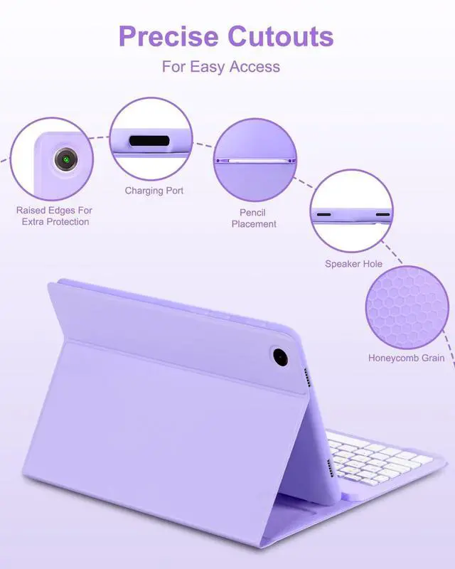 The keyboard will automatically enter sleep mode when not used for a long time to save power. Click any key to instantly The wake-up and standby state lasts up to 90 days, which is very friendly for travel and mobile office ^^ Builded-in Pen Slot, Full ProtectionSlim and lightweight soft shell design with built-in pen slot to hold and carry your capacitive pen; the protective case is made of high-quality soft PU leather and flexible TPU inner shell, anti-fall and anti-scratch, full coverage design can 360 protect your tablet from scratches and drops