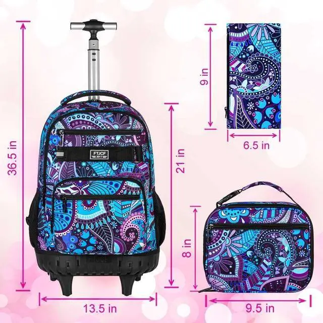 Upgrade material - We use high-quality durable materials to make this rolling backpack for girls set, giving it a water resisteant function that can protect your items from water damage. ^^ SET SIZE - 3PC