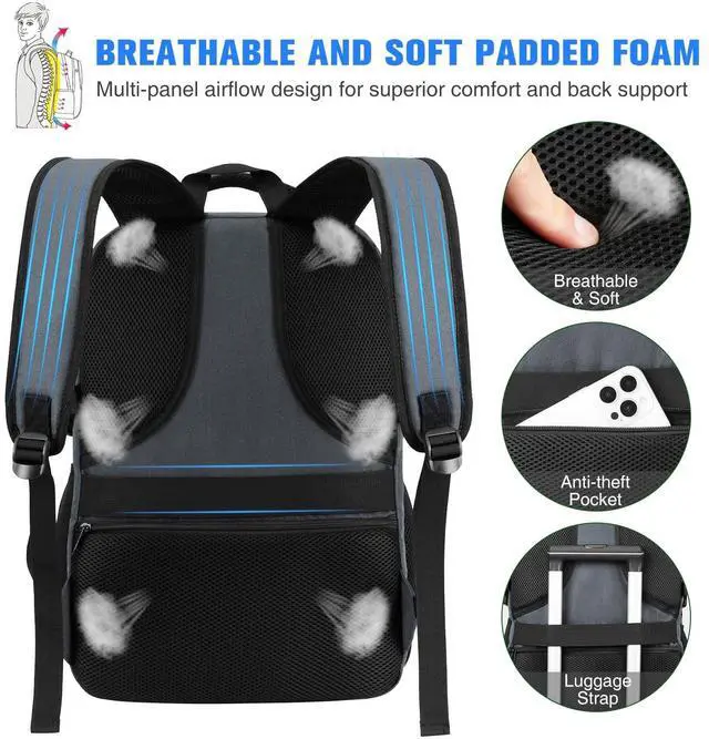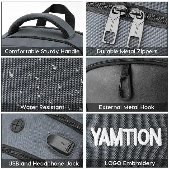 eatures: TSA FreindlyLarge CapacityLuggage StrapMetal hook on the frontThe logo is embroideredMade from waterproof polyesterUSB and Headphone PortWhat's in the