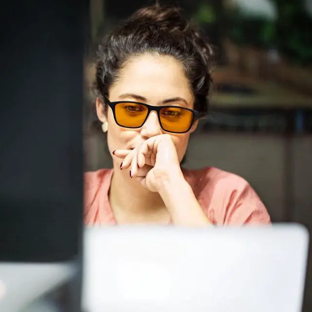 Amber Blue Light Blocking Lens - The amber lenses block 99.9 % of blue light in the lower range of the spectrum at 380-500nm, help lessen migraine attacks and reduce headache pain caused by prolonged screen time. But these lenses may distor color, if your job has strict color requirements, we not recommend. ^^ Computer Gaming Glasses - When Facing the screen for a long time absorbs a lot of blue light, will cause eye fatigue and migraines. FEISEDY gaming glasses protect your eyes from blue light exposure during extended gaming or screen use.