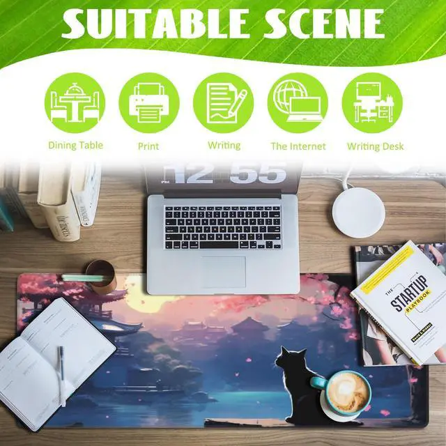 ^^ Anti-Slip Excellence: The soft and flexible non-slip rubber bottom provides increased friction resistance, keeping the desk pad securely in place on your desktop. It maintains an even flatness, even on imperfect surfaces, allowing you to fully immerse yourself in your work or game without the annoyance of mouse pad movement. ^^ Elegant and