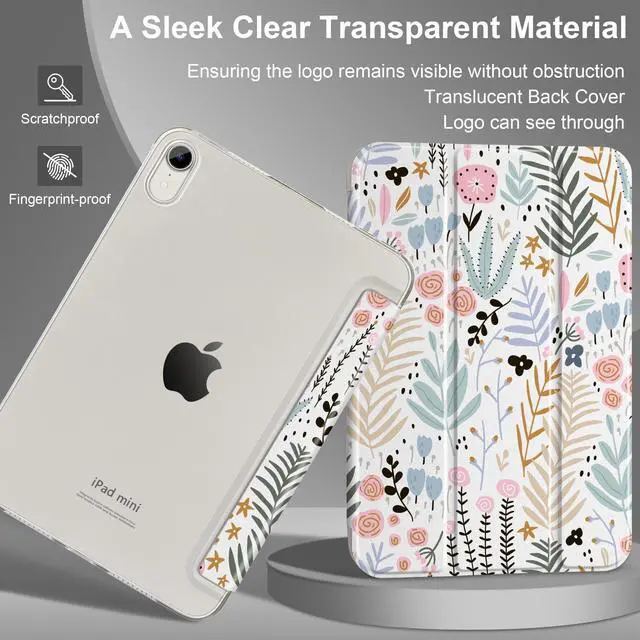 Compatibility -- Designed specifically for iPad Mini (A17 Pro) released in 2024 (Model numbers: A2993/A2995/A2996), iPad Mini 6th Generation 8.3 -Inch 2021 (Model numbers: A2567, A2568, A2569), Not compatible with other iPad models(mini 1/2/3/4/5). ^^ Auto Sleep/Wake Function -- Automatically puts your iPad to sleep when closed and wakes it up when opened, saving battery life. ^^ Trifold Stand -- Adjustable 3-fold design offers two viewing modes: one for media viewing and another for comfortable typing. ^^ Durable & Scratch-Resistant -- The case is made from high-quality PU leather and features a hard PC back, offering excellent protection against scratches and fingerprints. ^^ Transparent Hard PC Back & Soft Microfiber Interior -- The transparent, hard PC back allows you to display your logo while providing strong protection. The soft microfiber interior prevents scratches on your iPad screen and ensures safe handling.