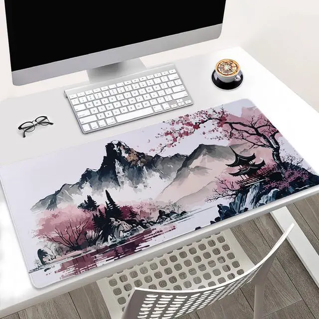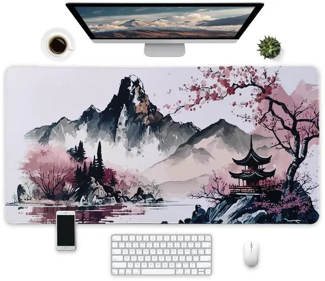 ARTISTIC DESIGN: Features a stunning Japanese landscape with misty mountain peaks, cherry blossoms, and a traditional pagoda in soothing pink and gray tones ^^
