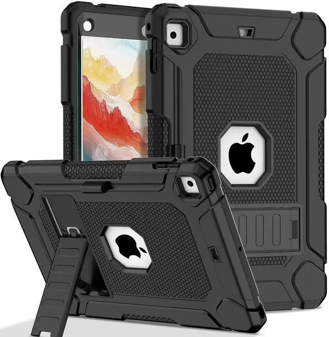 Pro 9.7 inch 2016 (Model: A1673 A1674 A1675). ^^ BUILT-IN KICKSTANDiPad 9.7 inch case with stand provides different viewing angles, allowing you to enjoy typing, gaming or watching videos. ^^ PRECISE CUTOUTSFull access to all buttons and controls, no need to take iPad out for charging or taking pictures, super convenient. ^^ SUPERIOR MATERIALCase made of 3 layers protective hard front and back PC shell, plus soft rubber finish, guarding your tablet against scratches, drops, and impacts.