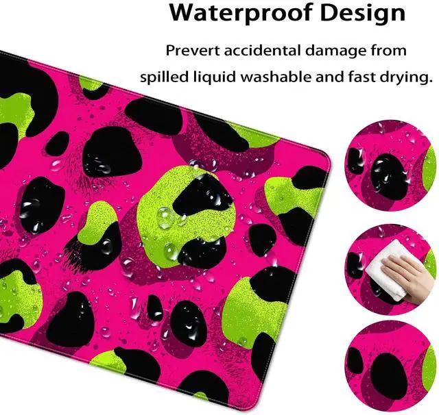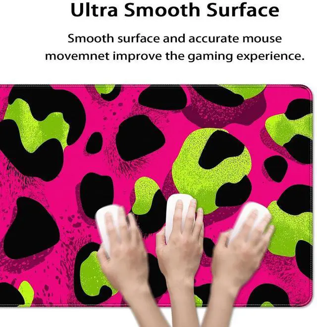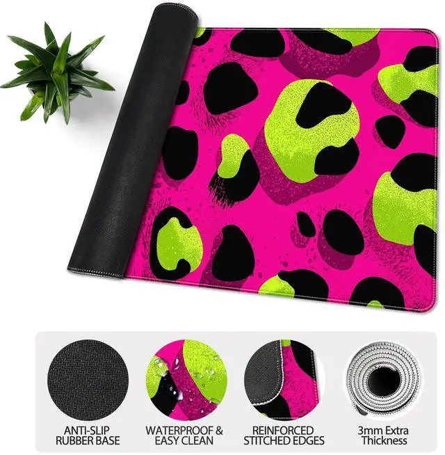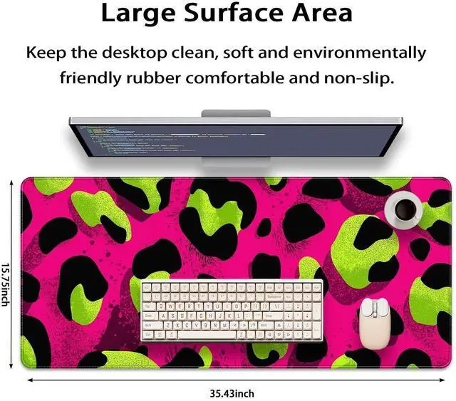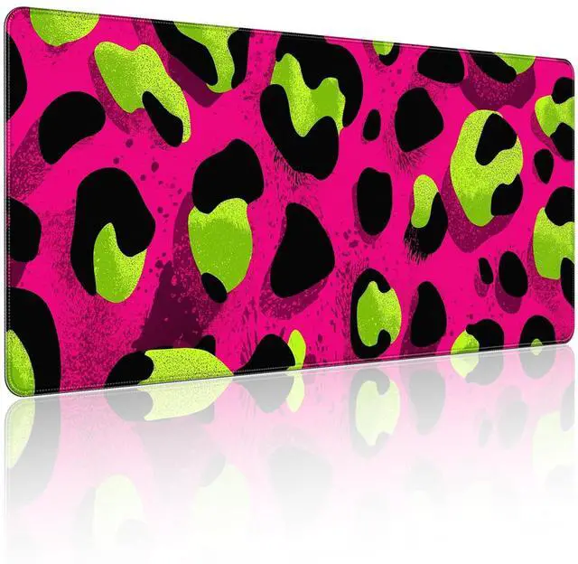 KOBWOPI 35.4 x 15.7 in, XXL Large Mouse Pad for Desk, Extended Keyboard Mouse Mat for Computer Office, Big Mouse pad with Stitched Edges, Gaming Pc-Leopard Print Pink Green