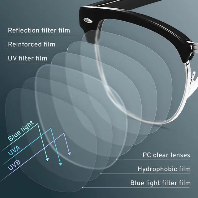 ^^ LIGHTWEIGHT: These mens blue light glasses feature a lightweight frame, meaning theyll stay comfy for long-term wear. Perfect as computer glasses, these non-prescription computer glasses men can be worn throughout the day. The blue light glasses for men feature polycarbonate HD lenses, which are anti-reflective and restore true color.