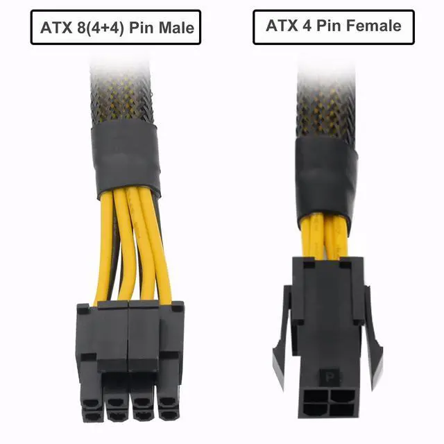 B: ATX 8 Pin(4+4) Male; ^^ CompatibilityCompatible with power supplies with ATX 4 pin male port output & motherboards with ATX 4 pin port; (This cable is a common power supply extension cable, not converted cable. It supports all of power supplies with CPU 4 pin male port output. ) ^^