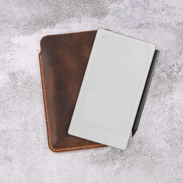 Imagine sliding your paper tablet out of a sleeve that looks better every month you carry it. This minimalist case keeps the reMarkable Paper Pro Move protected from scuffs in your bag while staying slim enough for meetings, commutes, and coffee-shop note taking. Each sleeve is hand cut from rustic cow leather and sewn entirely by hand using a traditional saddle stitch and thick waxed thread. Unlike common machine lock stitching, this construction resists unraveling if a single stitch is damaged, helping the sleeve hold up through daily carry. The open-top design gives you fast access without adding bulk or relying on a plastic shelljust clean lines and a comfortable grip.