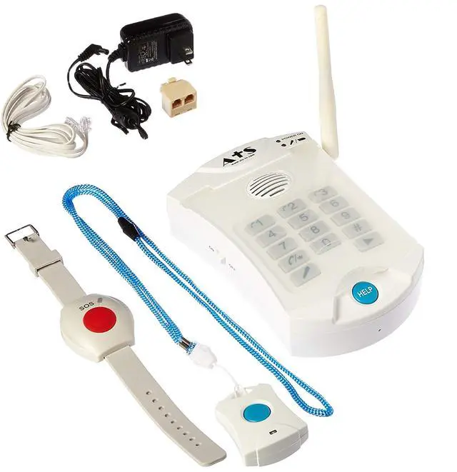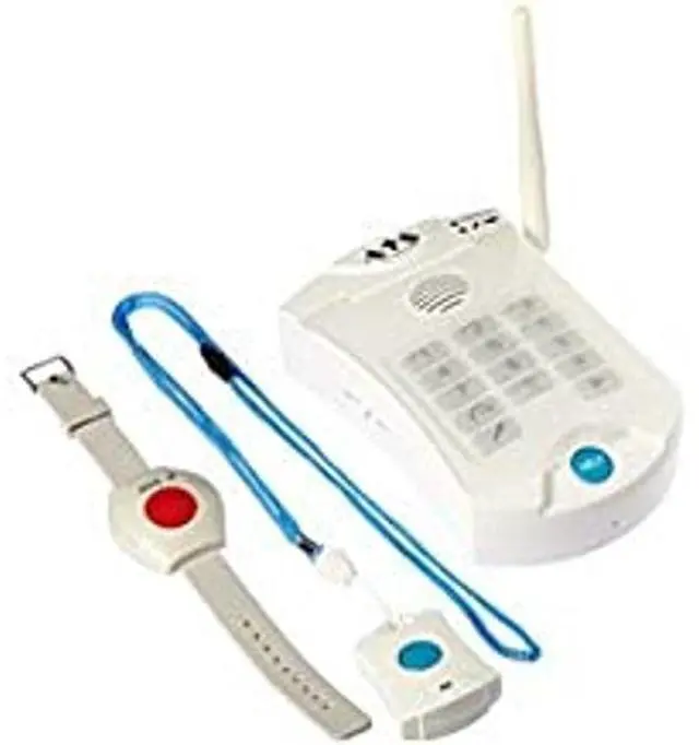 2 Panic Buttons Included: Necklace Panic Button and Wrist Panic Button. Pacemaker Safe - 100 Foot Range. Water Resistant Wrist Panic Button (You can shower and bathe with it). Never pay a monitoring fee! No Monthly Fees! Simple - Easy - Affordable. ----- How does it work? Using a home phone line, when the panic button is pressed the system dials the first number that is programmed into it. The system then waits to 'hear' any key pressed on the other end of the line. This tells the system that a human answered the call. If the systems hears a key pressed it will stop calling numbers and turn on the speakerphone. If the system does not hear a key pressed it will hang up and call the next number in sequence. We suggest that you have 911 programmed as the 3rd number to ensure that someone is contacted in the event of an emergency (this is totally optional).