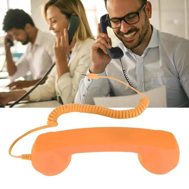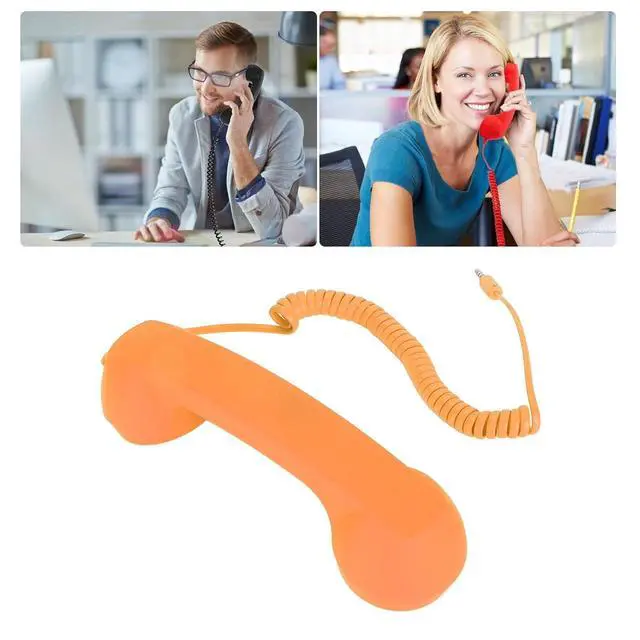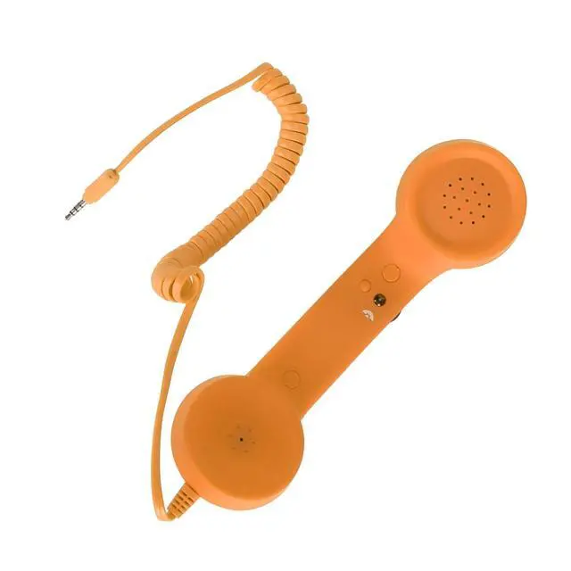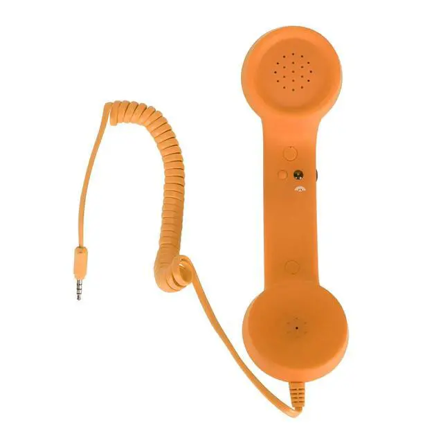 Phefop Retro Phone Handset, 3.5mm Connector Cell Phone Handset USB Cellphone Receiver with Microphone for Phones (Orange)
