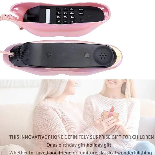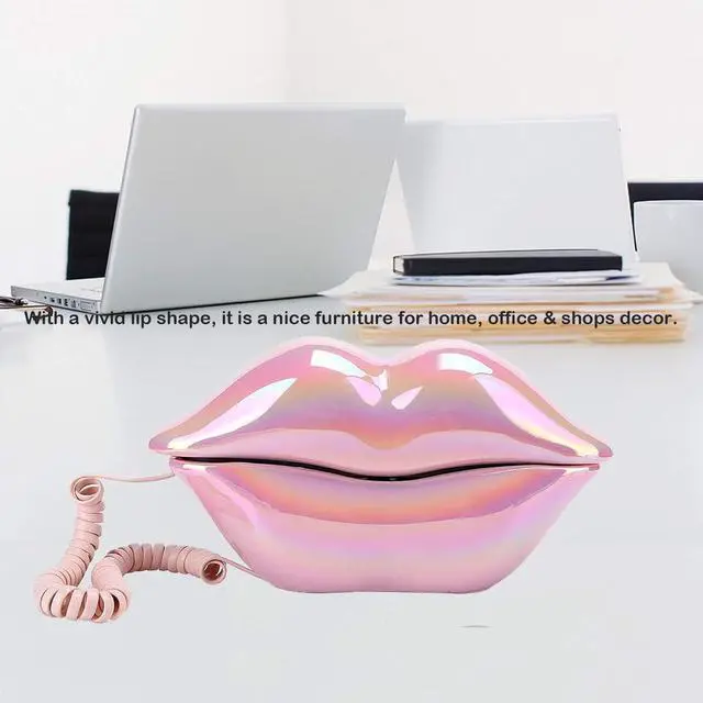 ZJYICANUS Advanced Home Telephone, Wired Novelty Cute Sexy Lip Phone, Wire Phone Home Decoration for Home Hotel Office Decor Gift (Electroplated Pink)