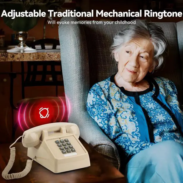 ^^ ADJUSTABLE RINGER VOLUME: Our retro landline phone designed with ringer volume control and hearing compatible handset, which satisfy the old people with poor hearing, the ringer is loud enough to be heard almost anywhere within your house or business. No more worrying about missing any call.