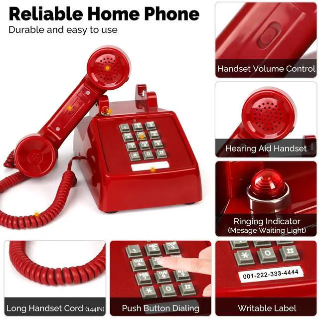 Emergency Backup Phone: This classic corded analog phone works seamlessly with various telephone systems without needing an adapterjust plug it in and go. Its vintage red design also makes it a reliable backup emergency phone