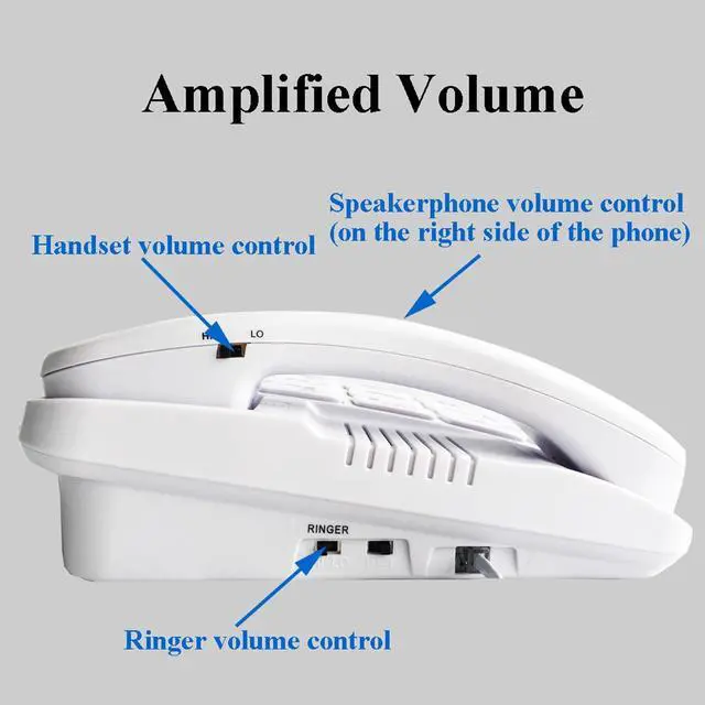 Amplified sound - Adjustable volume of handset, speakerphone and ringer
