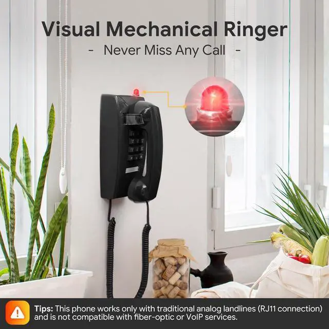 PLUG AND PLAY: Our old style wall phones no need electric power and wifi to work, it connects with your existing telephone line. This makes it an ideal emergency communication device during winter power outages when other forms of calling for help may be unavailable ^^