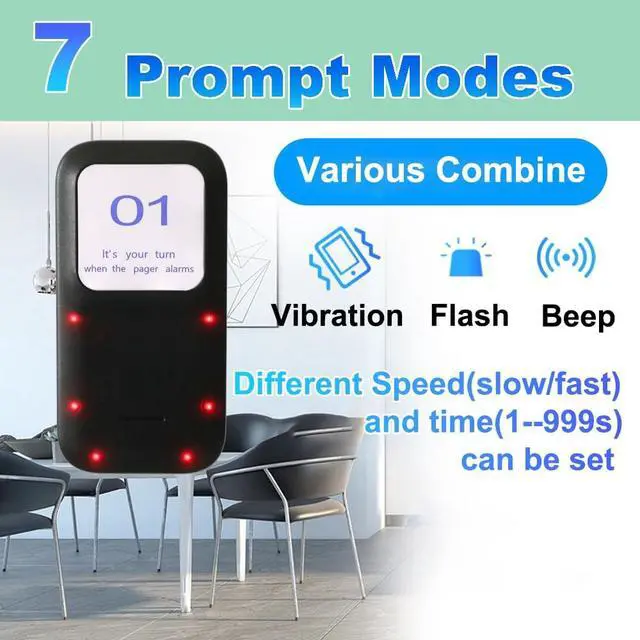 ^^ 7 Prompt modes: The paging system comes with options for a buzzer, vibration, and flash, which can be mixed and matched to ensure customers are alerted even in bustling settings.
