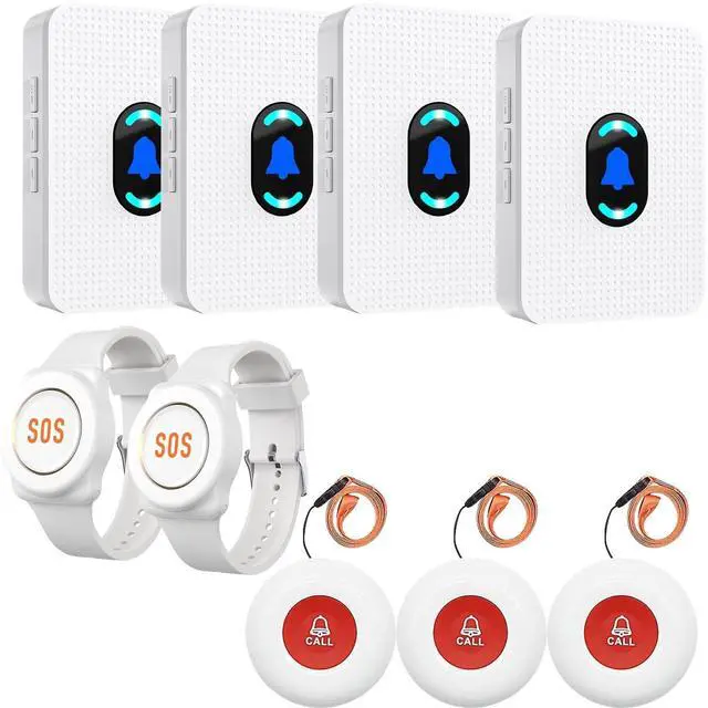Ideal for the elderly, mothers day gifts, sicks to quickly issue a caregiver alarm or alert to their nurse or caregiver. Also good for massage therapists, the perfect answer to knowing for sure when the client is ready without waiting too long to enter the room or not giving them enough time before knocking. Features Modern & stylish design Easy installation Approx. 800ft operation range (open air) 5 Levels of volume from 0dB to 110dB 20 Ringtones. The default ringtone is Ding-Dong.