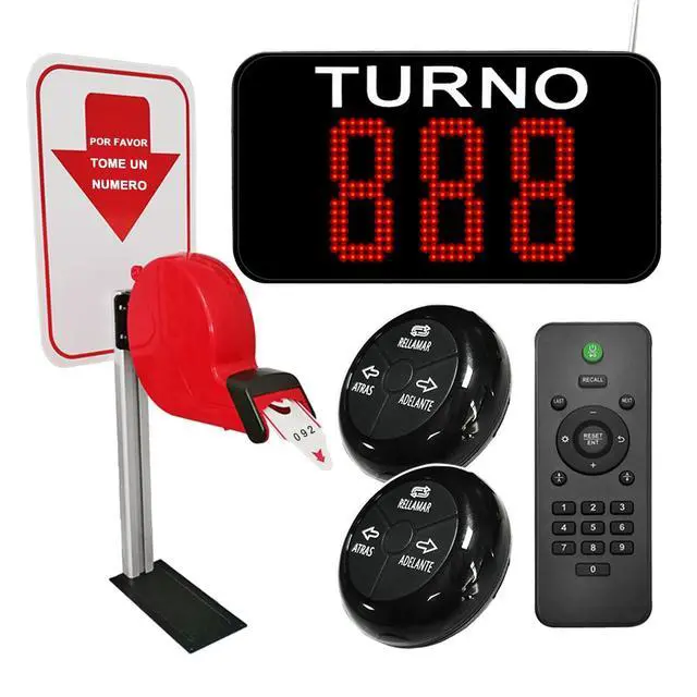 Package Includes: 1 x Number Display Receivers2 x NEXT Call Button1 x Red Ticket Dispenser with Stand1 x 3-Digit Ticket Rolls1 x Remote Control1 x Power Adapter1 x User Manual