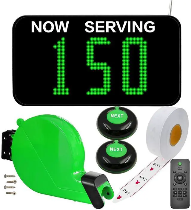 KOQICALL Take a Number Machine Queue Wireless Calling System for Customers with 1 Dot-Matrix Display Show Now Serving Number 2 Waterproof Next Call Button 1 Green Ticket Dispenser