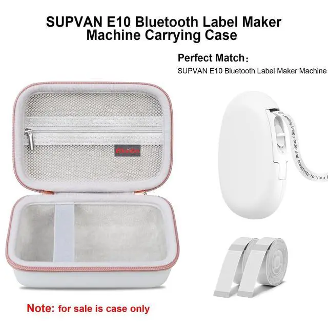 • Specially Designed for SUPVAN E10 Bluetooth Label Maker Machine--This portable bluetooth mini label printer carrying case is specially designed for supvan e10 bluetooth label maker machine. Internal space 1:1 build, perfectly fit for supvan e10 label maker. extra mesh pocket for label paper, sticker rolls, charging cables. (CASE ONLY! supvan e10 label maker not included)