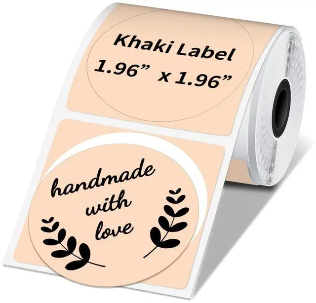 Label Details: 1.96" X 1.96" (50mmX50mm), Quantity: 1 Rolls/140 labels, Color: Black on Khaki.
