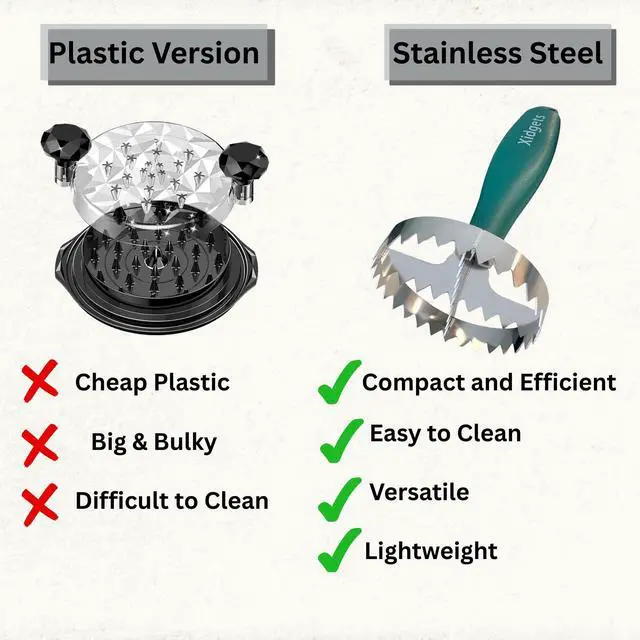 Dynamic Kitchen: Extend its use far beyond meat and greens. This tool is exceptionally capable of shredding cooled baked potatoes for the fluffiest hash browns, breaking up canned tuna or salmon for patties, crumbling firm tofu for stir-fries, and even gently crushing crispy bacon bits over a salad. ^^ Streamlined Cleanup and