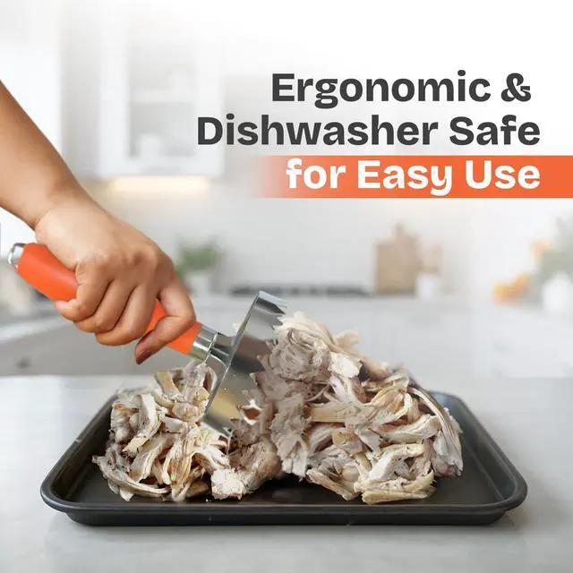 Design: Engineered with a thoughtfully contoured, non-slip handle, this shredder provides an exceptional grip and optimal leverage. This ergonomic design effectively distributes pressure, allowing you to tackle large volumes of meat and dense vegetables without any hand or wrist strain. ^^ Ultimate Versatility for a