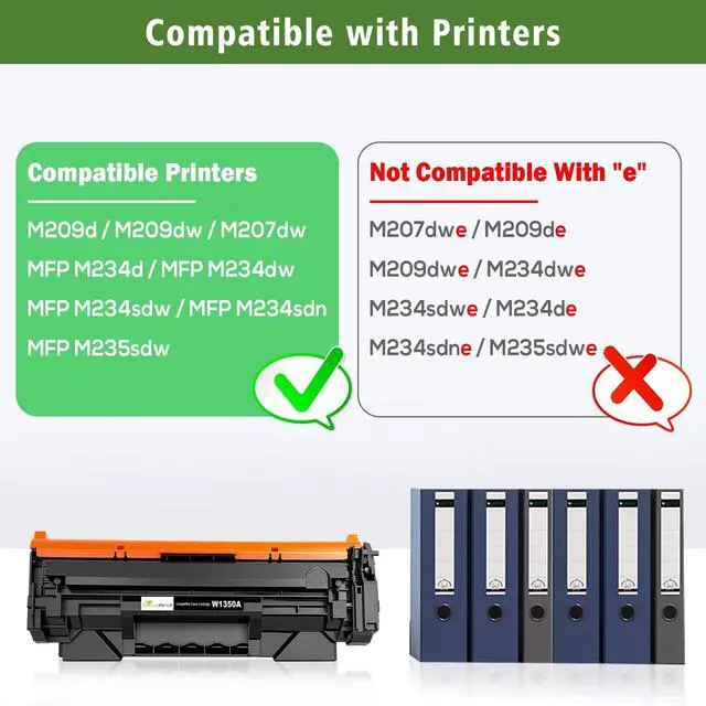 WARNING Compatibility Alert: Our compatible toner cartridge cannot be used with H P+ printers whose model names end with "e. " These printers are designed to operate exclusively with genuine H P cartridges. Our compatible toner cartridge is only compatible with non-H P+ printers that do not have an "e" in the model name.