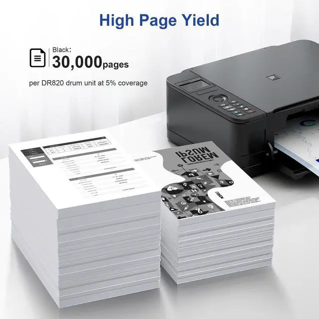 • Page Yield: Up to 30,000 pages per DR-820 DR 820 drum unit at 5 percent coverage of A4 paper.