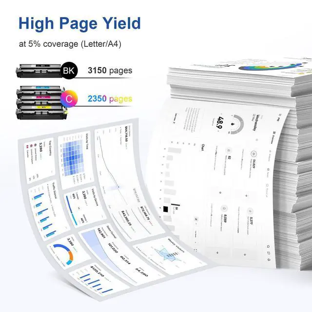 High Page Yield: Up to 3, 130 pages per black and 2, 350 pages per color 067H toner cartridges (Letter/A4, at 5% Coverage, depends on printer and usage) ^^