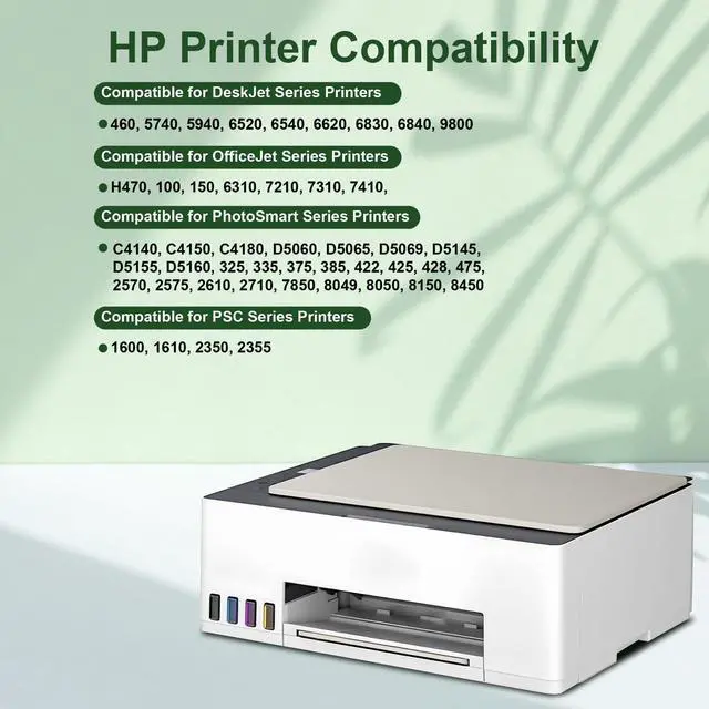 Compatible Printer Models: Compatible with hp Deskjet 5740 ink cartridges for hp printers 460 5745 5748 5743 6520 6540 6548 6620 6830 6840 9800d Priner Compatible with printer ink for hp officejet 7310 H470 100 150 6200 6215 7210 7408 7410 ink cartridge Photosmart 8450 B8300 B8330 B8338 B8350 B8353 2605 2608 2610 2613 2710 7850 8150 8400 8750 PSC 1610 all-in-one printer ink cartridges 1600 1613 2350 2355 Priner ^^