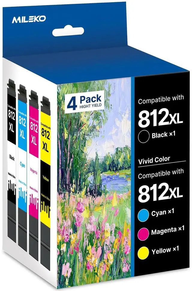 Package Contents: Remanufactured replacements for epson 812xl ink cartridges combo pack contains: 1 x Black 812xl ink cartridge, 1 x Cyan 812xl ink cartridge, 1 x Magenta 812xl ink cartridge, 1 x Yellow 812xl ink cartridge ^^ 5. MILEKO 812xl ink cartridge epson replacements for epson 812xl 812 xl for epson wf-7840 ink cartridges undergoes a strict experiment to ensure crisp black text and vibrant color image.