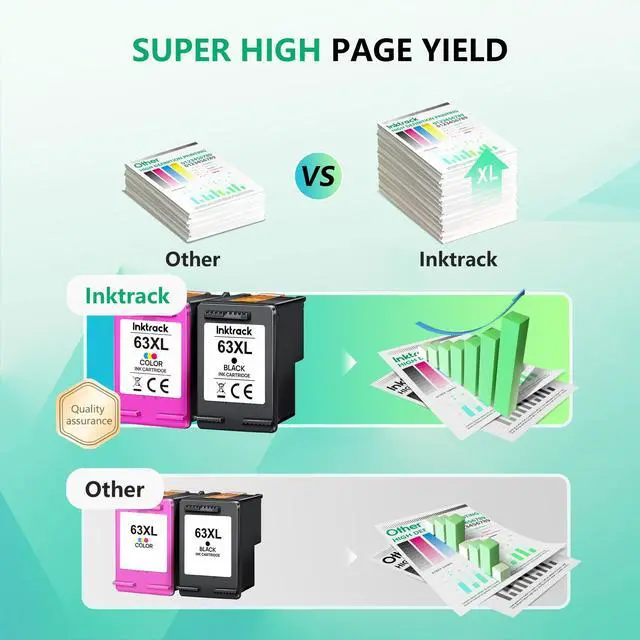 With Latest Chips: Inktrack for hp 63 Ink 63xl is equipped with the latest upgraded chips to ensure perfect compatibility with printers and excellent print quality, you can enjoy worry-free and efficient printing ^^ Focus on