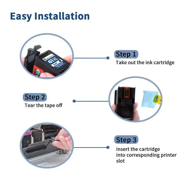• What's in the box: 2 New Extra Capacity Cartridge 61 pack of 2 ink cartridges: 3 61XL black ink cartridge, 1 61XL tricolor ink cartridge, and a user guide