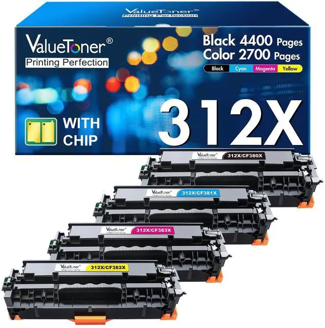 Contents: 4 Pack of Remanufactured 312X/305X Toner Cartridges with upgraded chip for HP 305A HP 312A Toner Cartridges HP 312X 305X (1 Black, 1 Cyan, 1 Magenta, 1 Yellow) ^^