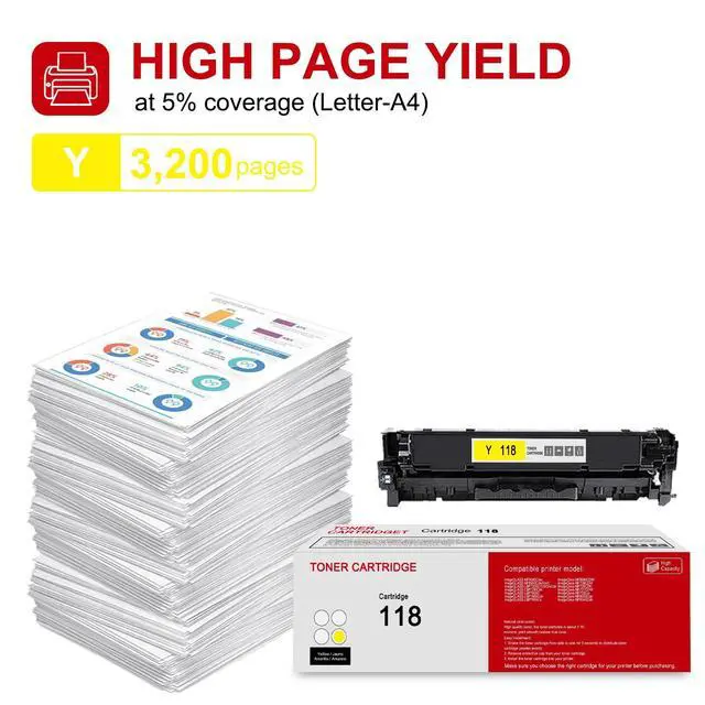 ^^ Page Yield: 3, 200 pages per 118 Yellow Toner Cartridge at 5% coverage. ^^ Compatible for
