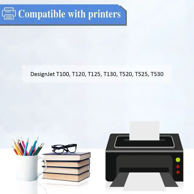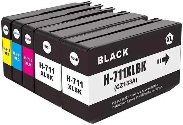 Compatible with Printers Compatible with HP DesignJet T100, T120, T125, T130, T520, T525, T530 Printer series. ^^ Package Contents Total 5 Packs of Compatible 711XL ink cartridges (2 x 711XL black, 1 x 711XL Cyan, 1 x 711XL Magenta, 1 x 711XL Yellow ). (NOT ORIGINAL). ^^ High Page Yield Approximately 2300 pages per 711XL black (CZ133A) ink cartridge 80ml, 1500 pages per 711XL Cyan (CZ130A) /Magenta (CZ131A) /Yellow (CZ132A) ink cartridge 29ml (with 5% coverage of A4 paper). ^^ High Print Quality SHUOLEI Premium Ink bring you Texts-Clear, Photos-Vivid and Lines-Consistent printing.