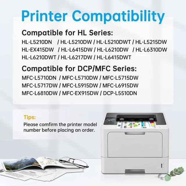Brother Printer: HL-L5210DN, HL-L5210DW, HL-L5210DWT, HL-L5215DW, HL-L6210DW, HL-L6210DWT, HL-L6217DW, HL-L6310DW, HL-L6415DW, HL-L6415DWT, HL-EX415DW, DCP-L5510DN, MFC-L5710DN, MFC-L5710DW, MFC-L5715DW, MFC-L5717DW, MFC-L5915DW, MFC-L6810DW, MFC-L6915DW, and MFC-EX915DW Printer. ^^ High Page Yield -