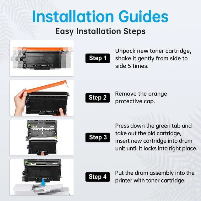 ^^ Attention: 1. If the printer prompts Non brother toner, please click Yes for normal use. 2. If the printer prompts "445, 446" or "Cartridge Error", please restart the printer for normal use.