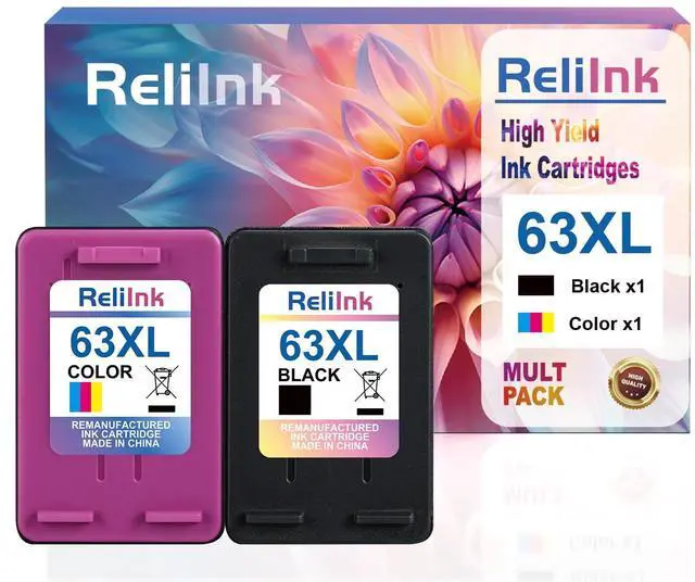 • High Page Yield: ReliInk for hp 63xl ink cartridge combo pack deliver long-lasting printing for home, school and office. Each for hp 63 black ink cartridge prints up to 650 pages and each for hp 63 color ink cartridge prints up to 400 pages, reducing the need for frequent replacements. ReliInk for hp ink cartridge 63 is perfect for students, offices, and busy households who need consistent quality. Enjoy dependable printing from the first page to the last with these for hp63 ink cartridges.